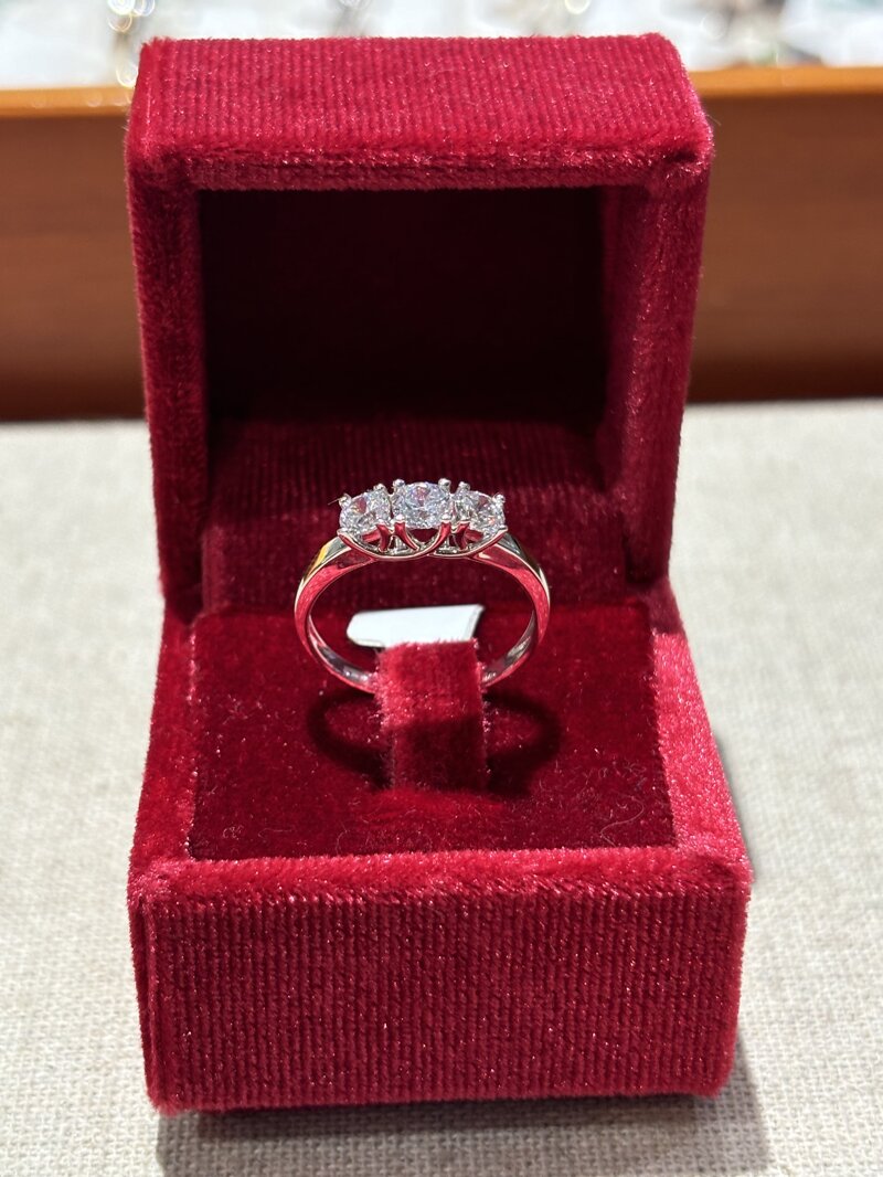 Anello Trilogy oro bianco 750° con zirconi taglio in brillante, misura 14