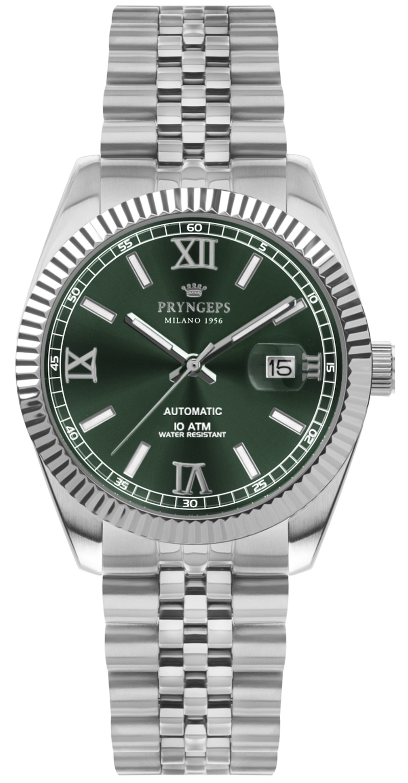 QUADRANTE Verde, blu o bianco, cifre romane con indici, logo in rilievo, datario al 3