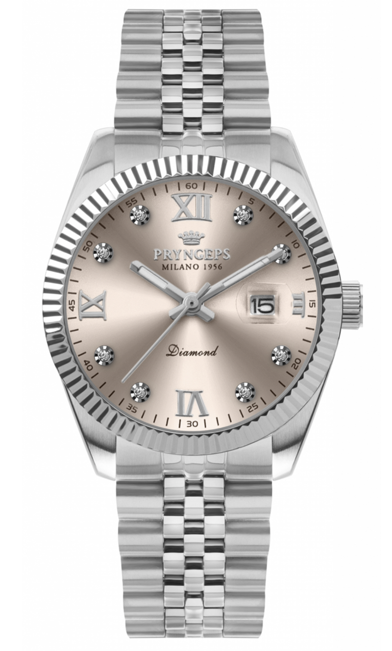 CASSA Acciaio diametro 32 mm, water resistant 10 ATM, corona serrata a vite, crystal coated sapphire, fondello acciaio serrato a vite, lunetta in acciaio, in acciaio, mm 9,85
