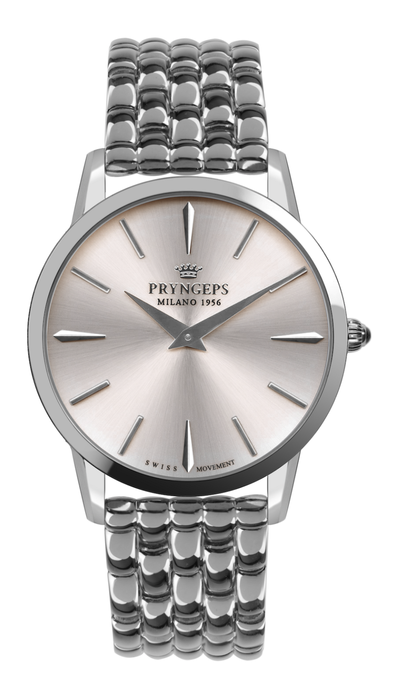 CASSA Acciaio diametro 36 mm, water resistant 3 ATM, corona serrata a vite personalizzata, crystal coated sapphire, fondello acciaio serrato a vite, lunetta in acciaio, Spessore della cassa mm 7